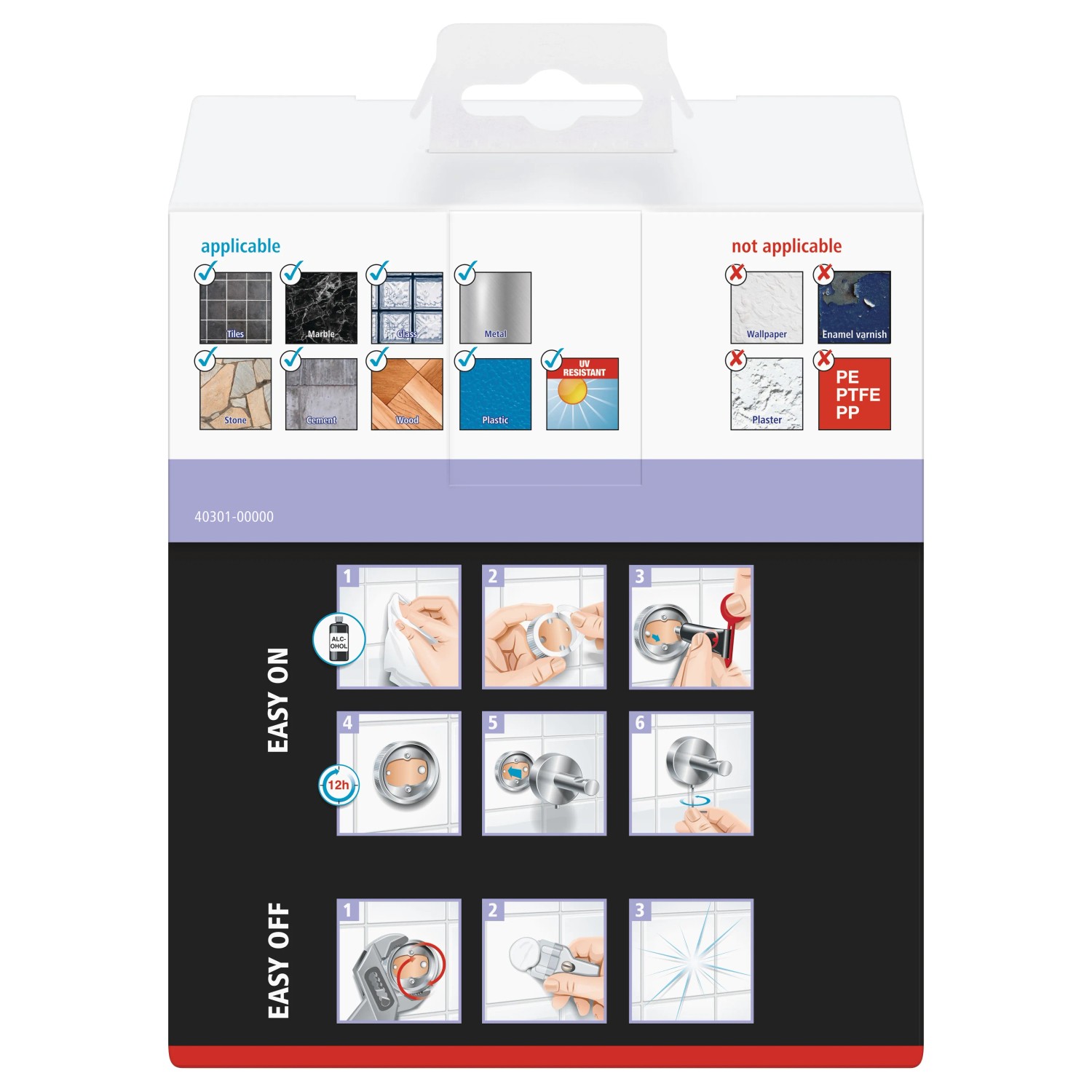 A praktikus ragasztásos rögzítéssel fúrás és csavarozás nélkül felszerelheti a WC-papír tartót. A rögzítő adapter és a ragasztómassza tartós és megbízható tartást biztosít 6 kg-ig. Az eltávolítás is egyszerű, és nem hagy nyomot. Így a WC-papír tartót egy új adapterrel (BK20) egy másik helyre tudja rögzíteni.
