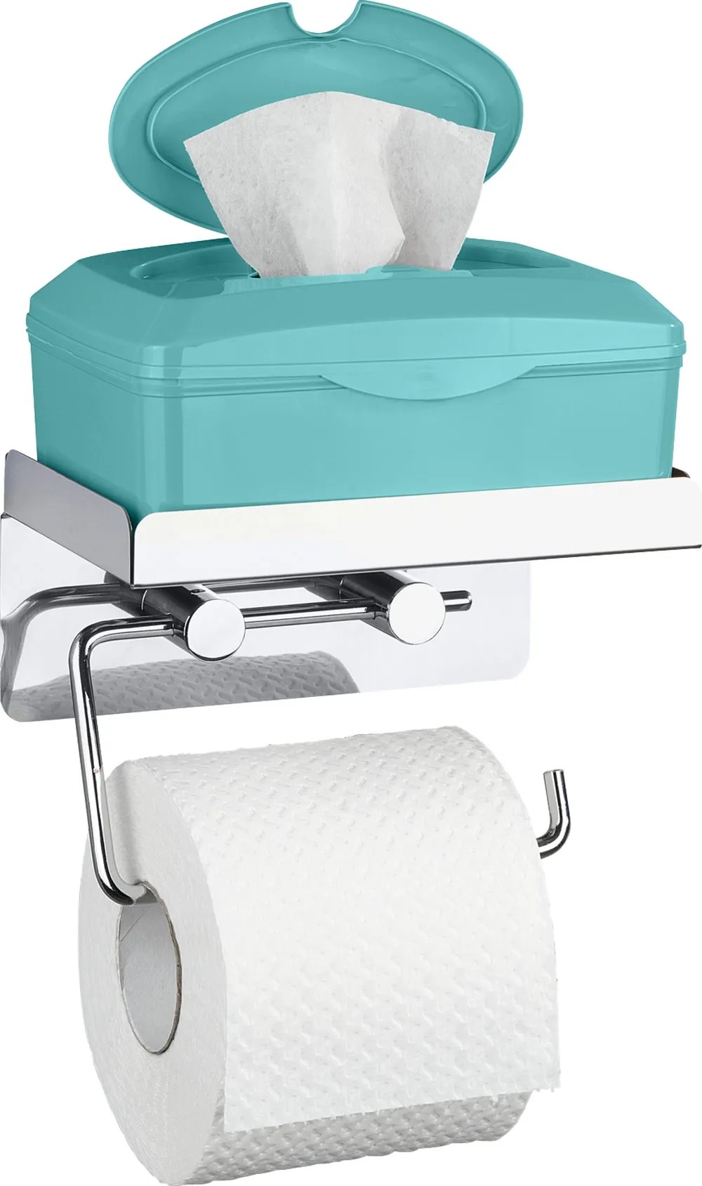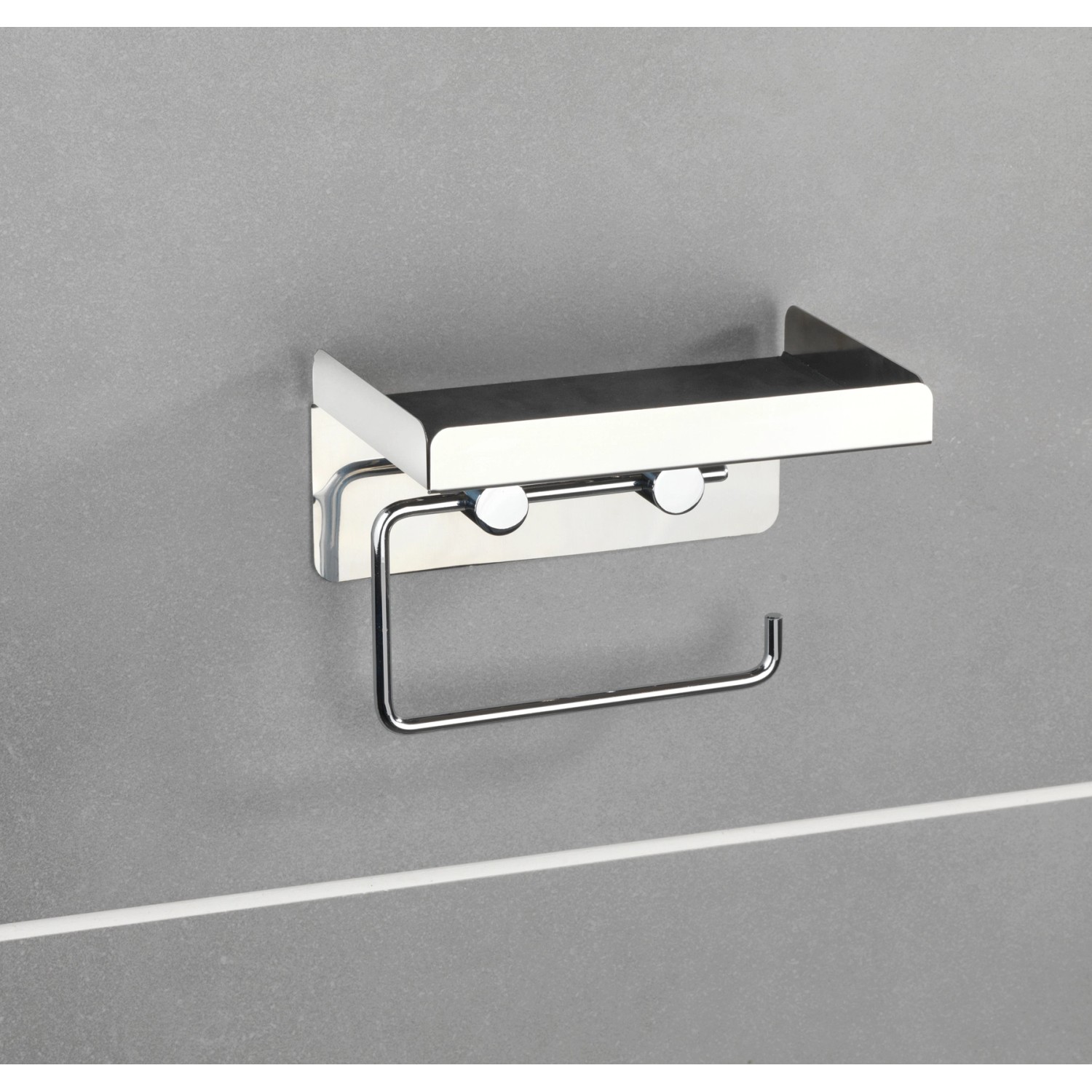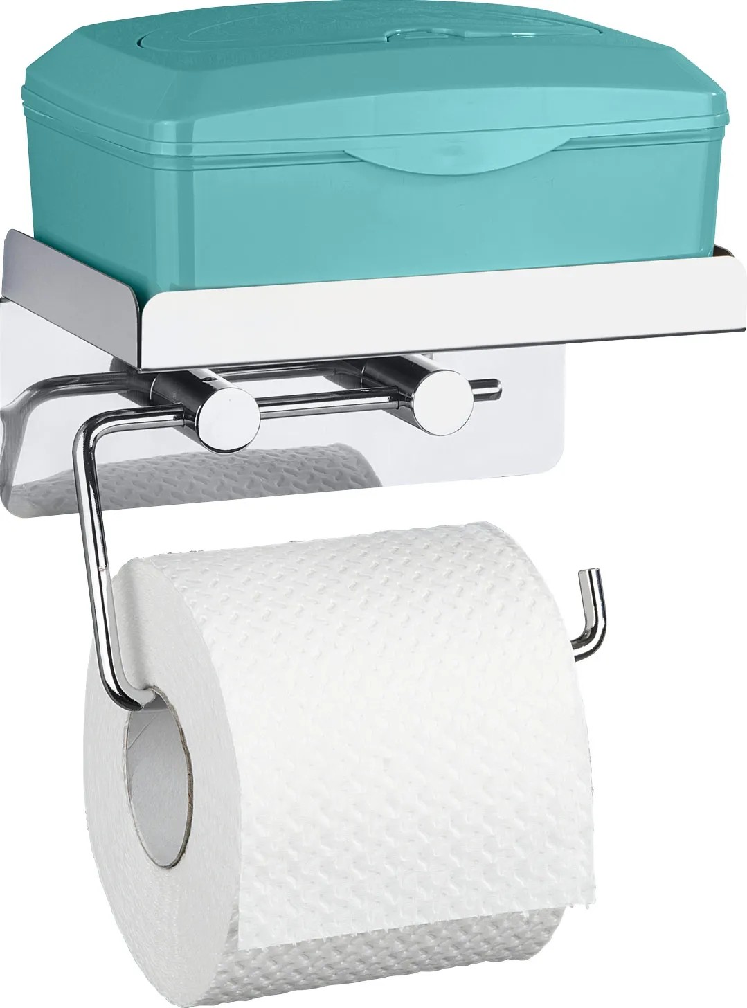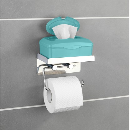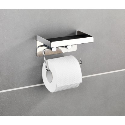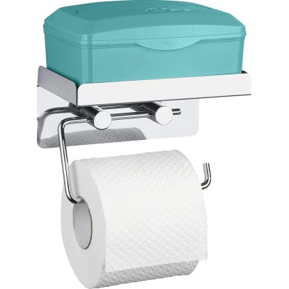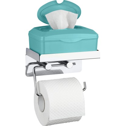 A Wenko WC-papírtartó kiváló minőségű rozsdamentes acélból készült, s egy praktikus tárolópolccal rendelkezik pl. a nedves törlőkendő doboza vagy egyéb eszközök számára.