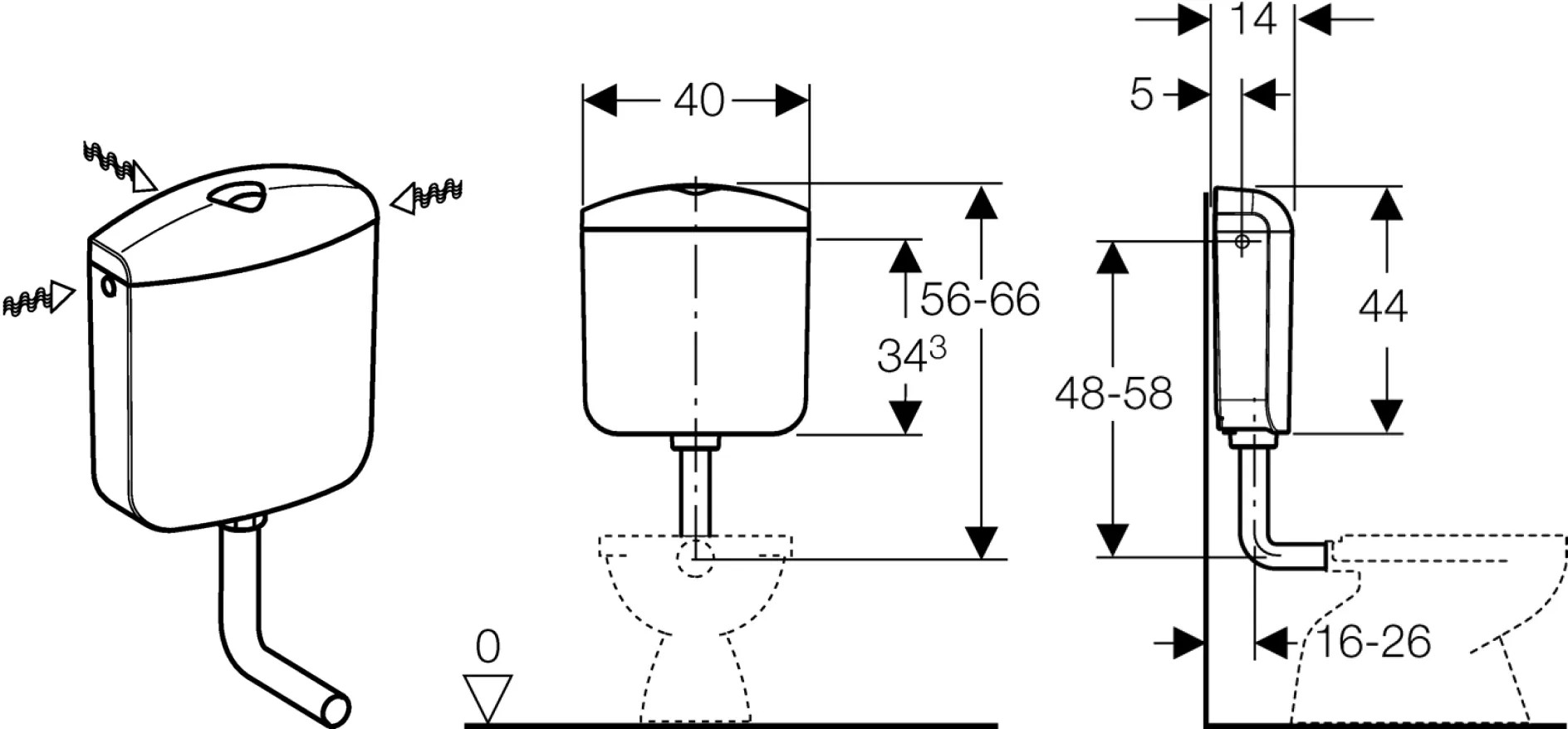 A Geberit AP117 falon kívüli öblítőtartály egy teljes lefolyóval és dupla nyomógombbal rendelkezik. Befogadóképessége 9 l. A csomag egy öblítőtartályt, egy lefolyócsövet, egy tömítést és egy rögzítéshez szükséges készletet tartalmaz. Így egy csomagban minden rendelkezésére áll, ami az összeszereléshez szükséges.