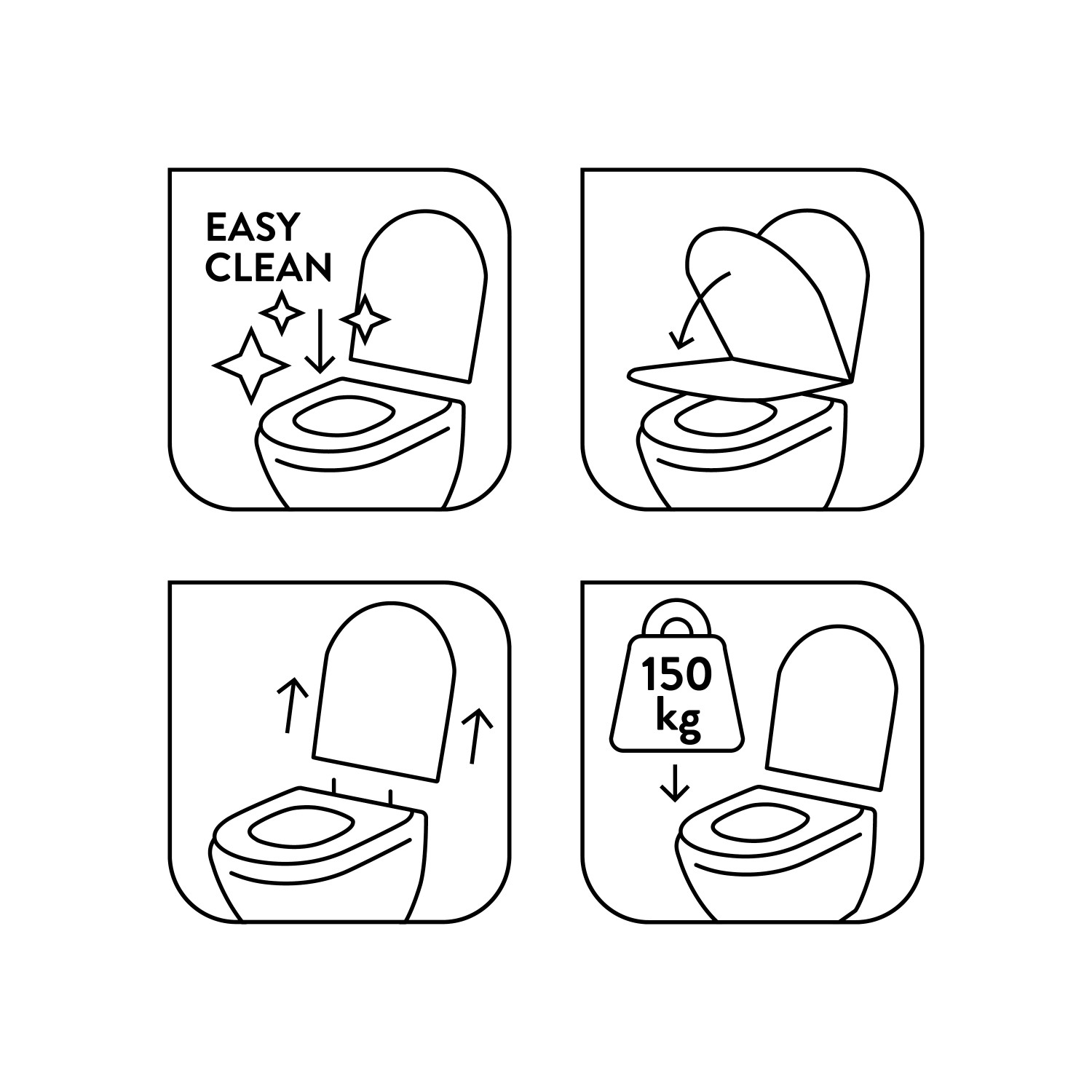 Annak érdekében, hogy hosszú ideig élvezhesd az új ülőkét, nagy hangsúlyt fektetünk a kiváló minőségre. Ezért rendkívül stabil és terhelhető Duroplastból készült. A magasfényű, nem porózus felület időt és energiát takarít meg a tisztítás során. A WC-ülőke és -fedél közötti tartós kapcsolatot műanyag zsanérok biztosítják. A fokozatmentes leeresztő automatikának köszönhetően a fedél hangos csattanás nélkül záródik. A gyorskioldó funkciónak köszönhetően egyszerűen leveheted és visszahelyezheted a WC-ülőkét. Így különösen gyorsan és könnyen végezhető az alapos tisztítás.
