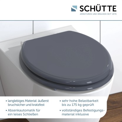 A leeresztő automatikával ellátott, kiváló minőségű antracit Eisl Holzkern WC-ülőke normál méretű, és szinte az összes kereskedelemben kapható WC-csészéhez alkalmas. A csendes leeresztő rendszernek köszönhetően kellemetlen zajok nélkül csukhatja le a fedelet és az ülést. Ez a strapabíró Holzkern anyagból készült WC-ülőke törésbiztos és karcálló, így hosszú élettartamú. A zárt pórusú felület egyszerű és higiénikus tisztítást tesz lehetővé. Az Eisl WC-ülőkét gyerekjáték összeszerelni, és szerelésre készen, rögzítőanyaggal együtt kerül kiszállításra. Állítható rögzítési technológiával rendelkezik, amely különböző módokon történő szerelést tesz lehetővé.