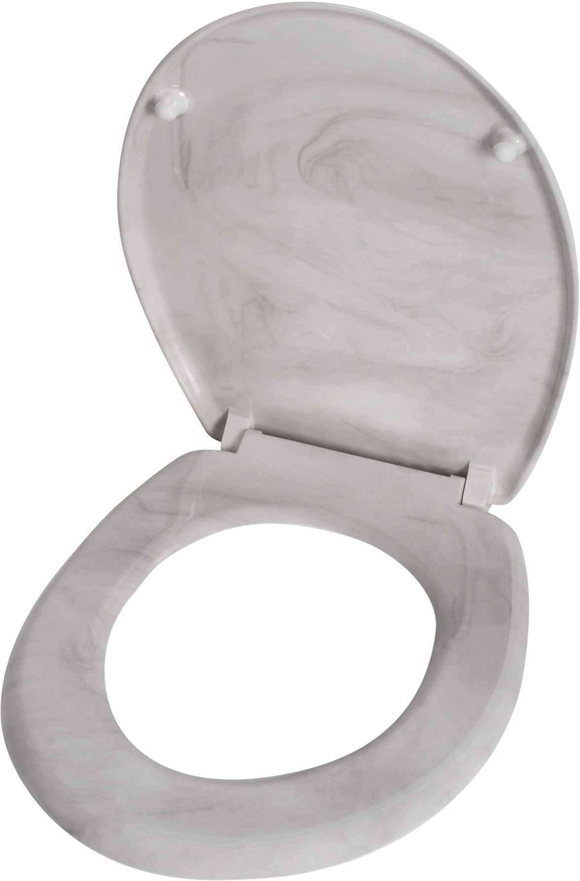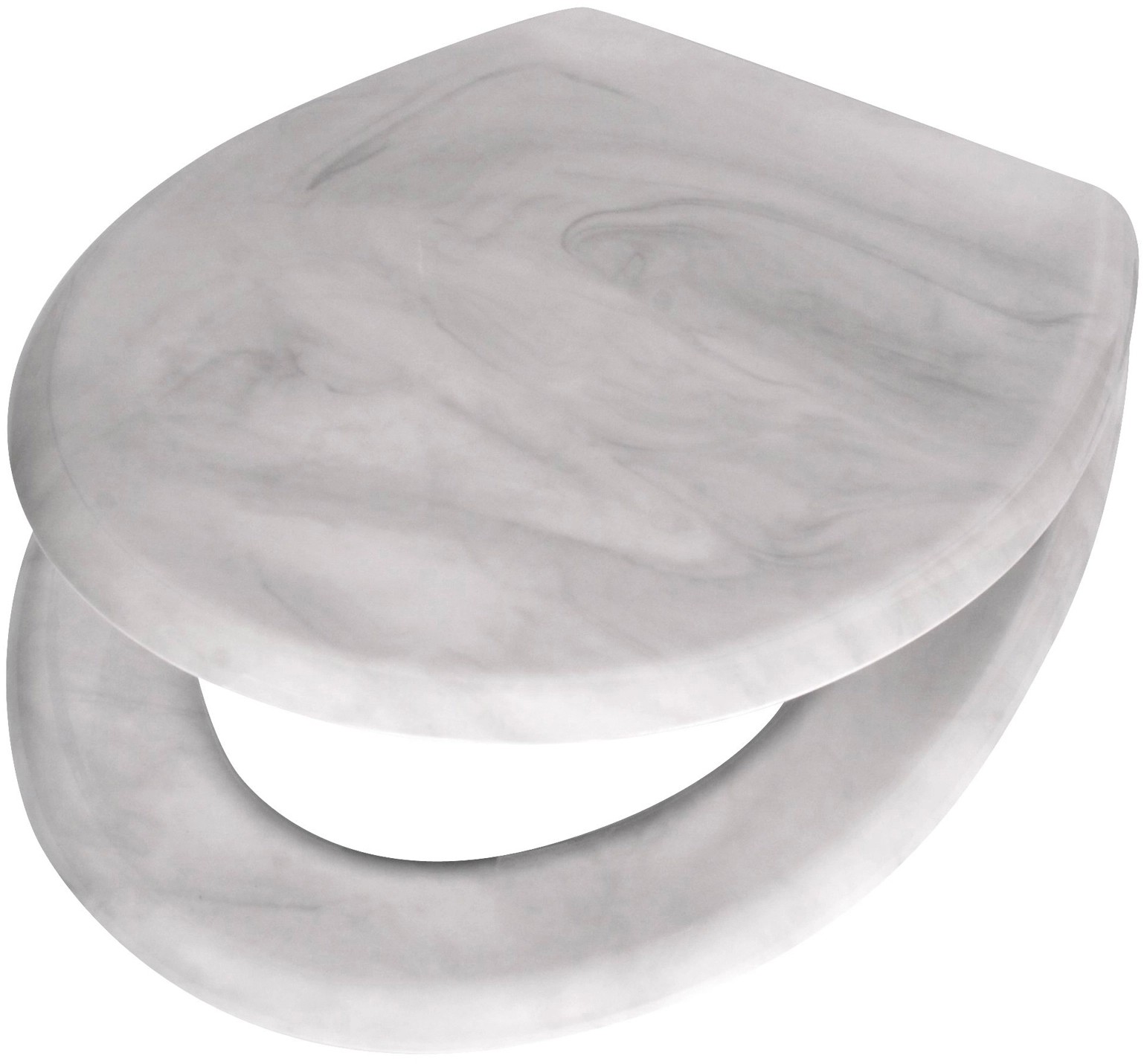 A WC-ülőke időtálló megjelenése szürke márványt idéz. Nemes megjelenése és magas minősége luxust csempész a fürdőszobába vagy a vendég WC-be. A kiemelkedően erős, fémzsanéros kialakításának köszönhetően a WC-ülőke különösen stabil, és 150 kg-ig terhelhető. A csomag tartalmazza a rögzítéshez szükséges szerelőanyagot.