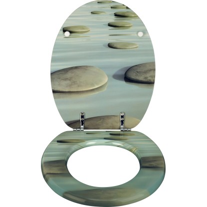 Az MDF-ből készült OBI Deco-Line Morona WC-ülőke fém zsanérokkal rendelkezik. A WC-ülőke 150 kg-ig terhelhető. Emellett a szokatlan kavicsos motívum kiemelkedő látványt jelent a fürdőszobájában.