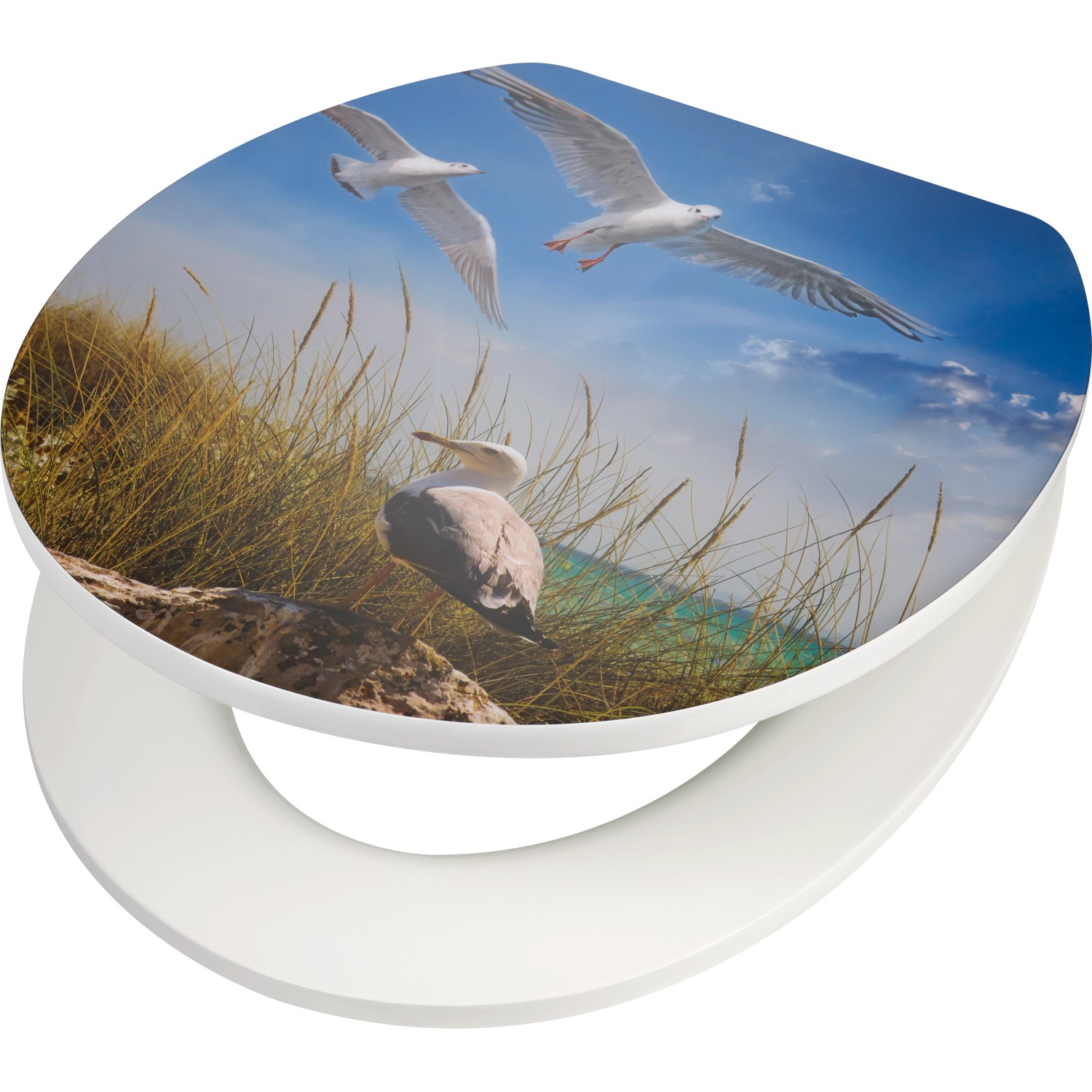 Az OBI Deco-Line Paru WC-ülőke MDF-ből készült, fém zsanérokkal, valamint leeresztő automatikával rendelkezik, amely a fedél gyengéd és halk lecsukását teszi lehetővé. 150 kg-ig terhelhető. A WC-ülőke leszerelésének megkönnyítése érdekében a Paru WC-ülőke egy levehető funkcióval van felszerelve. A motívum a tenger és a strand hangulatát varázsolja fürdőszobájába.