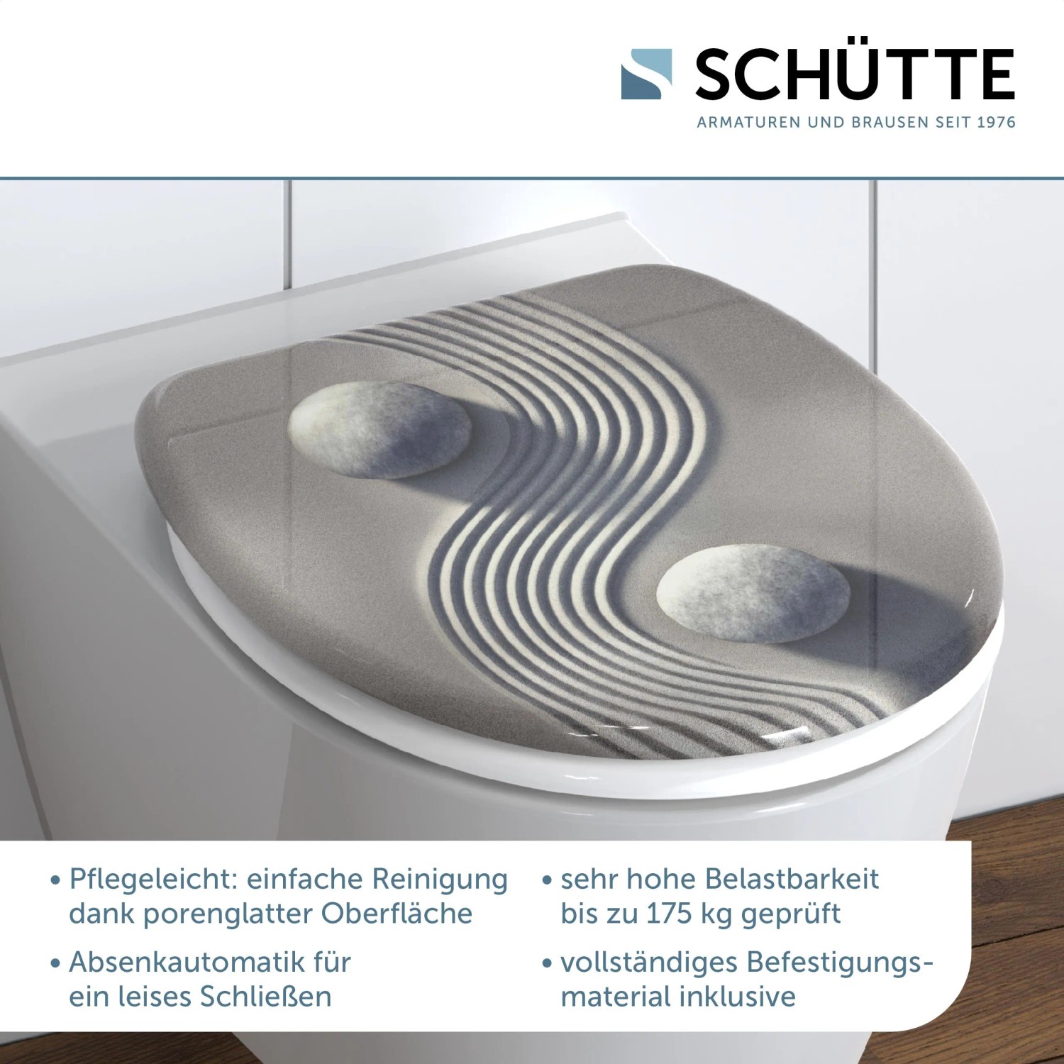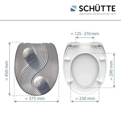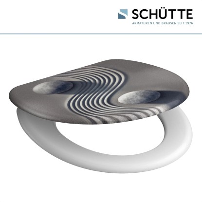 A jin-jang mintájú, duroplasztból készült Schütte WC-ülőke rendkívüli mintájával győzi meg a vásárlókat, és garantáltan látványosság lesz, akár a vendég WC-ben, akár a fürdőszobában helyezi el. A kiváló minőségű duroplaszt műanyagból készült, modern WC-ülőke funkcionalitása is meggyőző. Leeresztő automatikával rendelkezik, ami a fedél és az ülőke finom és zajtalan lecsukását teszi lehetővé. Az ülőke normál méretű, így szinte minden szokványos WC-csészéhez illik. A rendkívül kemény felületű duroplaszt anyag különösen törésbiztos és karcálló, ezáltal hosszú élettartamot garantál. Ráadásul az ülőke a zárt pórusú felületnek köszönhetően egyszerűen tisztítható. A csomag részét képező teljes szerelőkészletnek és a könnyen értelmezhető szerelési útmutatónak köszönhetően egy pillanat alatt elvégezhető a felszerelés.