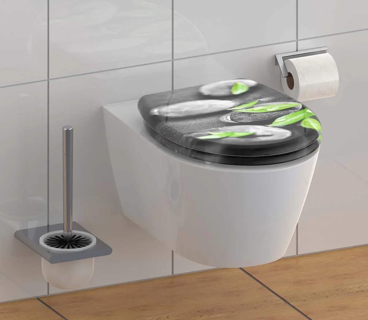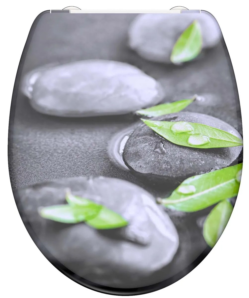STONE duroplaszt WC-ülőke. Ötletes formaterv egészen a legutolsó részletig.. Az az elképzelés, amely szerint a fürdőszoba kizárólag a napi higiéniát szolgálja, már rég a múlté.. Az olyan alapértékek, mint a sokszínűség és a termékek minősége, valamint az egyediség új távlatokat nyitnak.. . A termék jellemzői. . Egyedi: tetszetős SEA STAR nyomott minta. Kényelem és funkcionalitás: Kiváló minőségű WC-ülőke leeresztő automatikával (a fedél és az ülőke lágyan és hangtalanul csukódik le). Praktikus kezelés: a gyorszáras technológiának köszönhetően a WC-ülőke egyszerűen levehető. A WC-ülőke normál méretű, így szinte minden szokványos WC-csészéhez illik. Rugalmasság: állítható rögzítési technológia a különböző módokon történő felszereléshez. Innovatív rögzítési technológia: a ragasztólapos plusz rögzítésnek köszönhetően nem csúszik el a WC-ülőke. Hosszú élettartam: a rendkívül kemény felületű duroplaszt különösen törésbiztos és karcálló. Könnyen ápolható: a duroplaszt WC-ülőkék zárt pórusú felülete egyszerű és higiénikus tisztítást tesz lehetővé. A teljes szerelőkészletnek, valamint a könnyen érhető szerelési útmutatónak köszönhetően gyerekjáték a felszerelés. . Műszaki adatok:. . Mérete (Sz x Ma x Mé): 374 x 450 x 40 mm. A termék súlya: kb. 1657 g. Színe: nyomott minta három felületen. . Minőség-ellenőrzés:. a szigorú minőség-ellenőrzések és a kiváló minőségű anyagok nagy fokú biztonságról és tökéletes minőségről gondoskodnak.