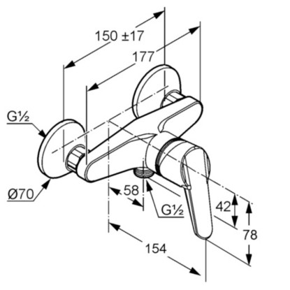 KLUDI D-VISE egykaros zuhanycsap, fali kivitel, teli fogantyú, kerámia kartus hőfokkorlátozóval