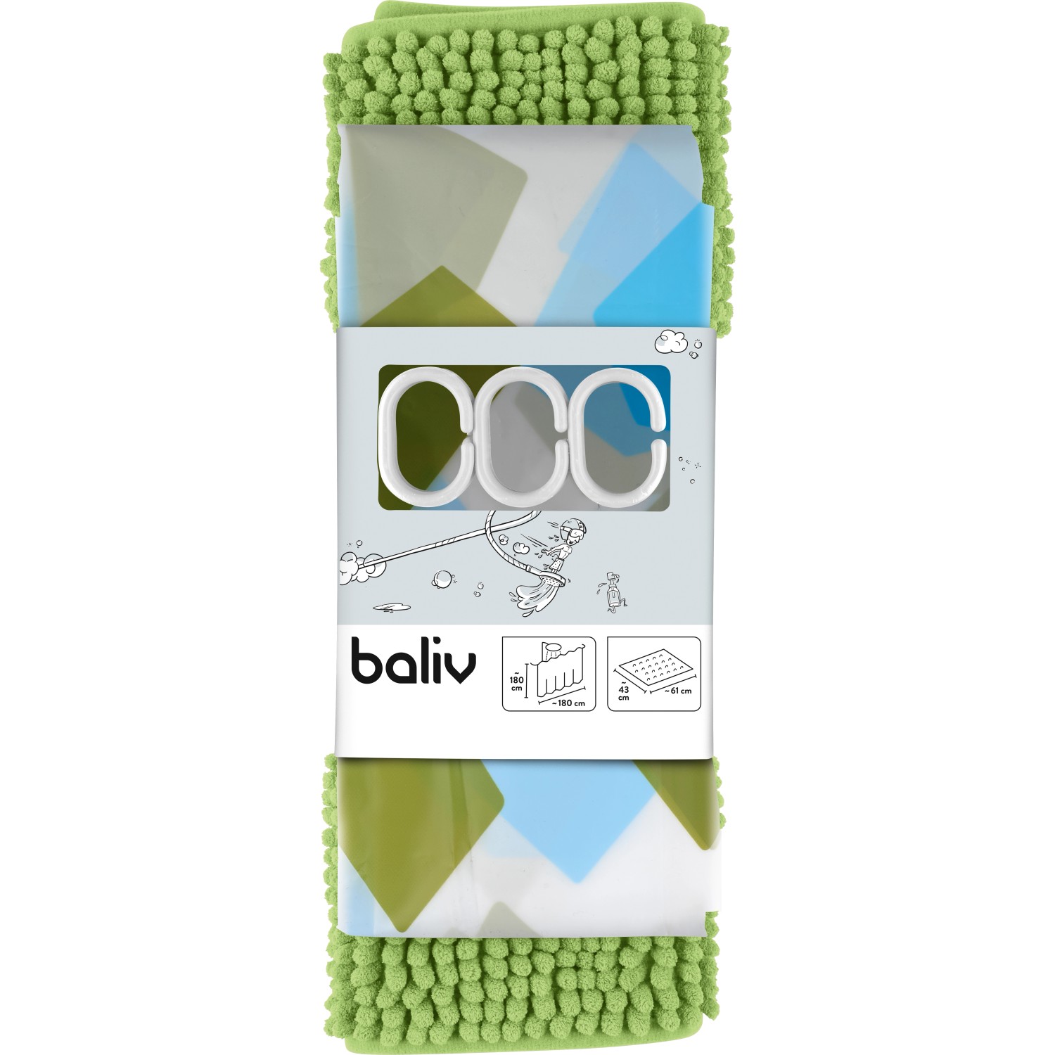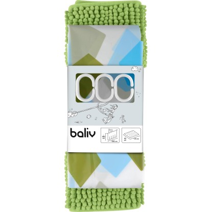 Kidíszíti a fürdőszobát: A Baliv fürdőszobaszőnyeg és zuhanyfüggöny szett a dekoráció színfoltja lesz, és igazi oázissá varázsolja fürdőszobádat. A zuhanyzáskor kifröccsenő víz és a nedves padló már a múlté. Míg a fürdőszobaszőnyeg divatos zöld színben pompázik, a zuhanyfüggöny közvetlenül a hozzá illő mintás kialakítással hívja fel magára a figyelmet.