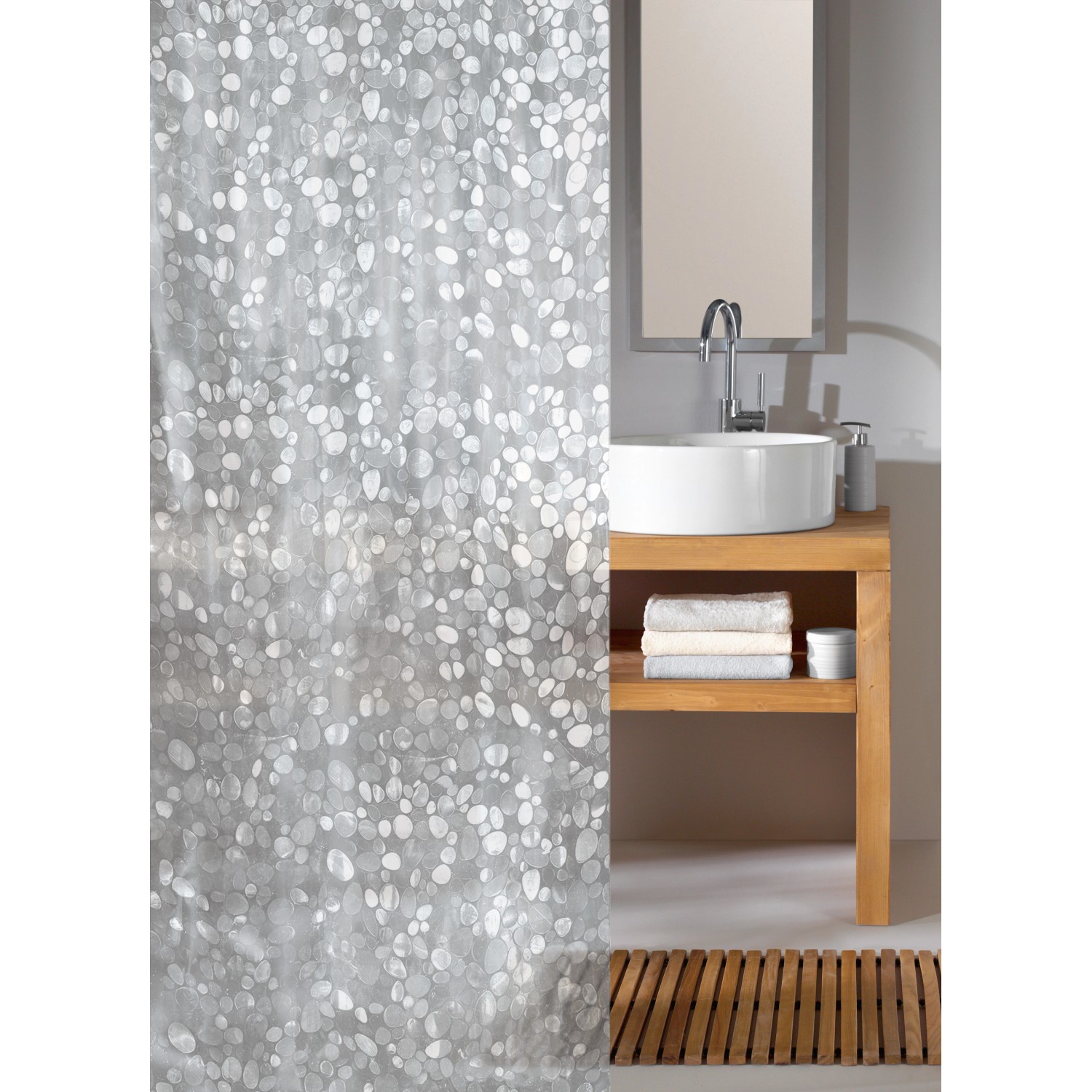 A Kleine Wolke magas minőségű Cristal zuhanyfüggönye fürdőszobája egyedi dísze lehet. A klasszikus-átlátszó kialakítású zuhanyfüggöny nem csak mutatós, hanem rendkívül praktikus is. Ezzel a 180 cm x 200 cm hosszú függönnyel nem lesz több zavaró víztócsa a járólapon. 100 % vinylből készült, maximális vízhatlan és rendkívül hosszú élettartamú.
