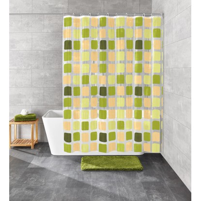 A 180 cm x 200 cm méretű, algaszínű Kleine Wolke Sonny zuhanyfüggöny két előnyt is kínál, mivel a geometrikusan elrendezett csempék színes kialakításával vidám hangulatot teremt, és vizuálisan is feldobja fürdőszobáját. Emellett a zuhanyfüggöny belátás és fröccsenés elleni védelemként is szolgál fürdőkádakhoz és zuhanyzókhoz egyaránt. A zuhanyfüggöny teljesen vízálló és megerősített lyuksorral rendelkezik. A termék hosszú élettartamát és vízállóságát folyamatosan ellenőrzik, így sokáig élvezheti az előnyeit. A környezetbarát anyag újrahasznosítható és PVC-mentes.