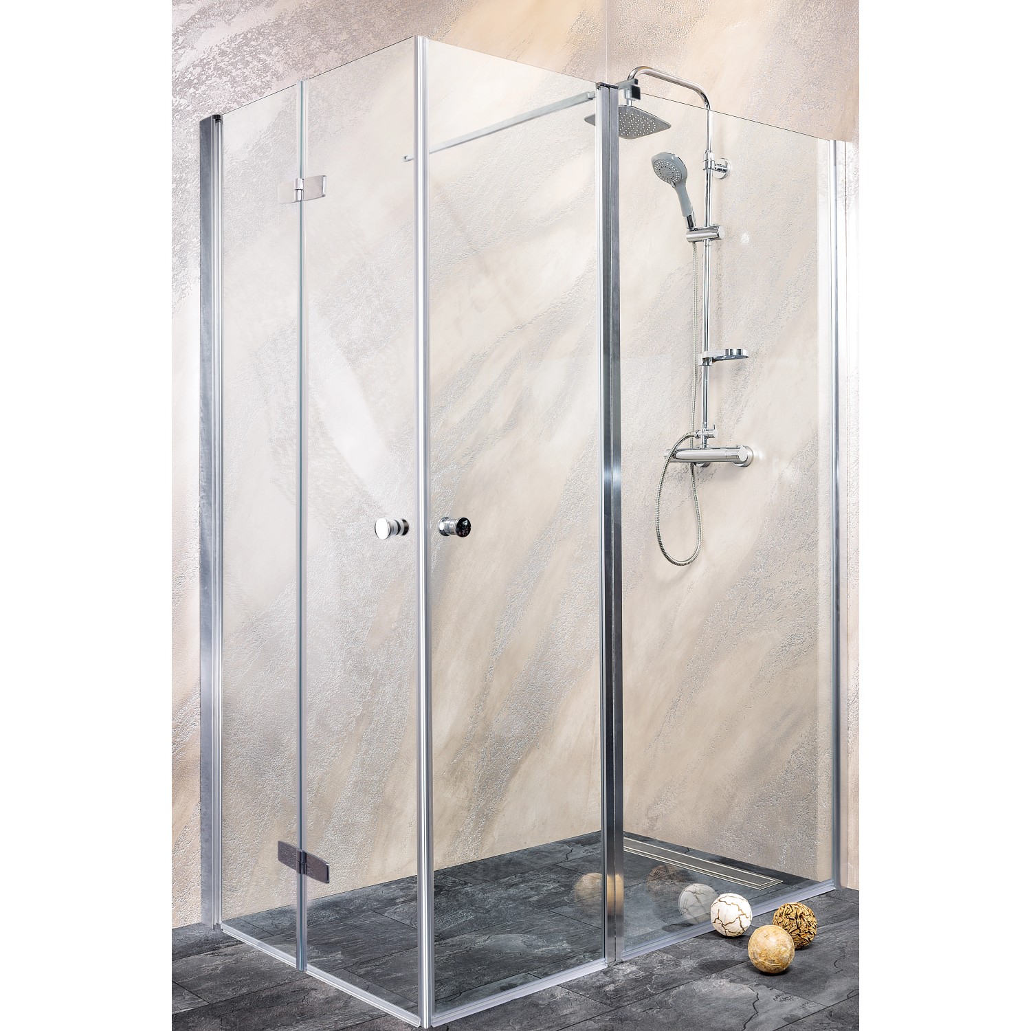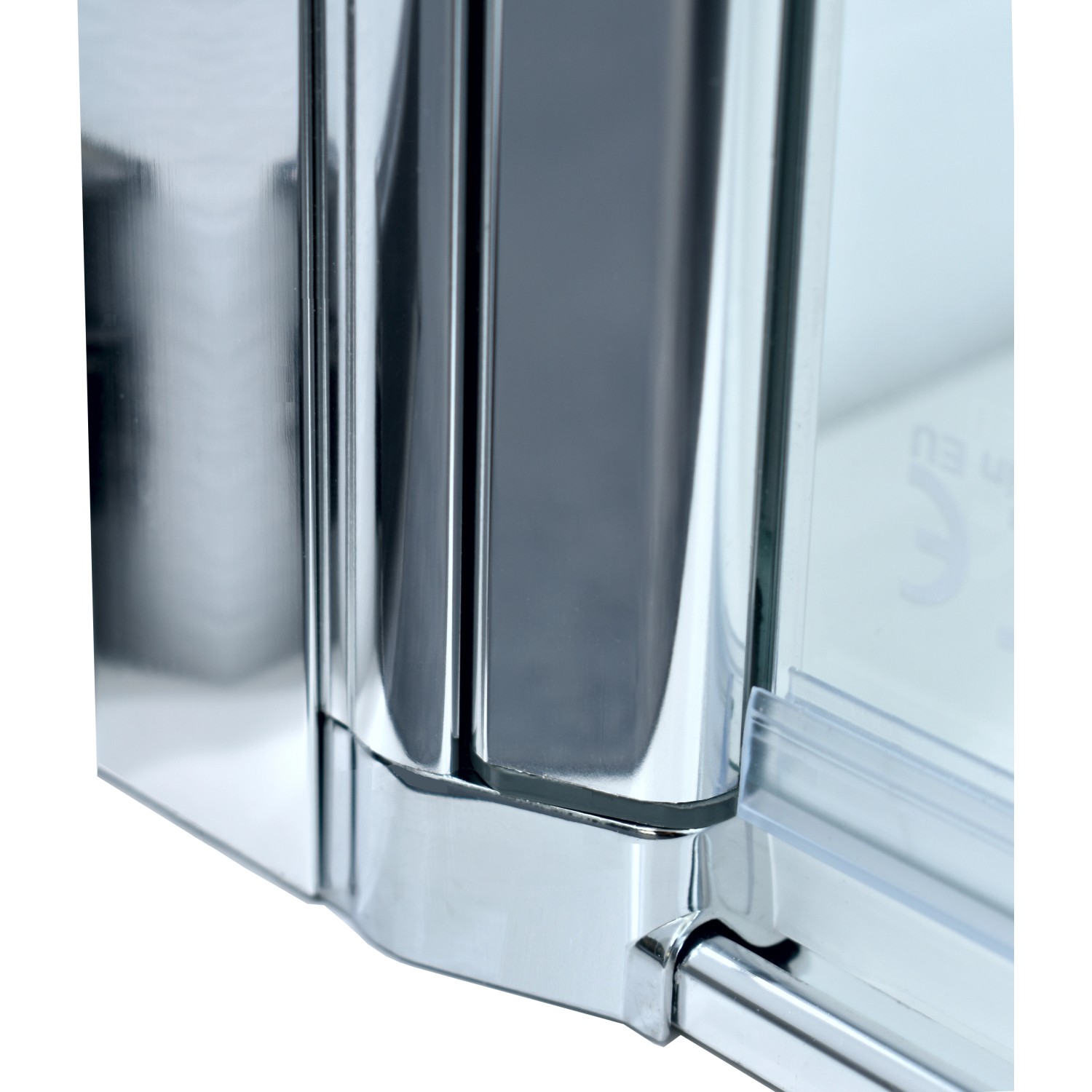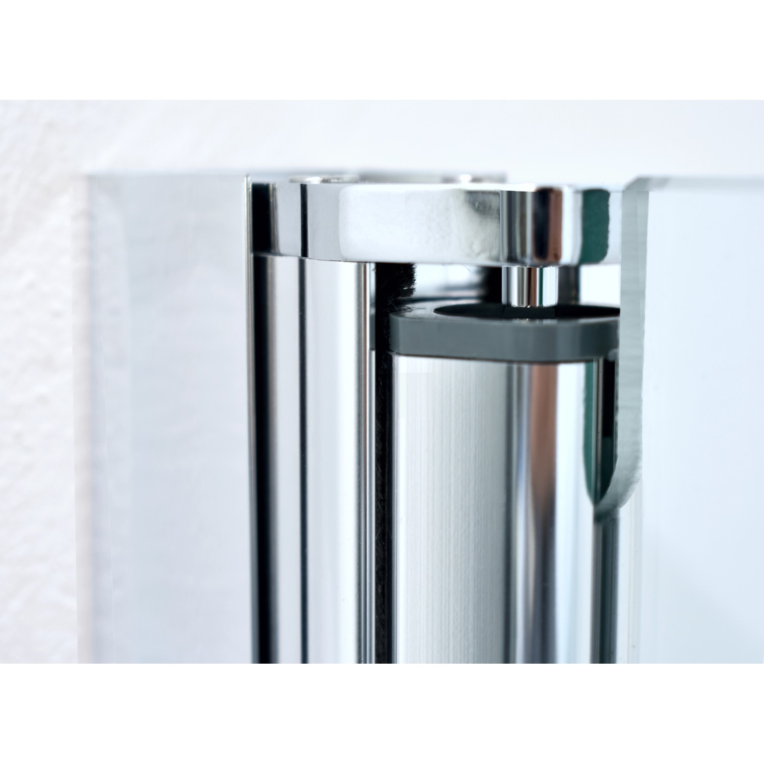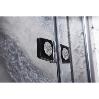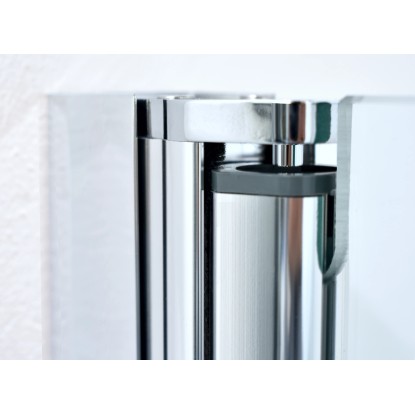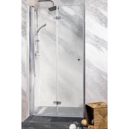 A középen csukló és 180 fokban nyitható ajtó lehetővé teszi a tér jöbb kihasználását kisebb fürdőszobákban is. 6 mm-es biztonsági üveg. Vízlepergető bevonat. Akadálymentes belépés. Állítható fali profil, króm. Vízzáró szilikon tömítés. Ajtóemelő mechanika