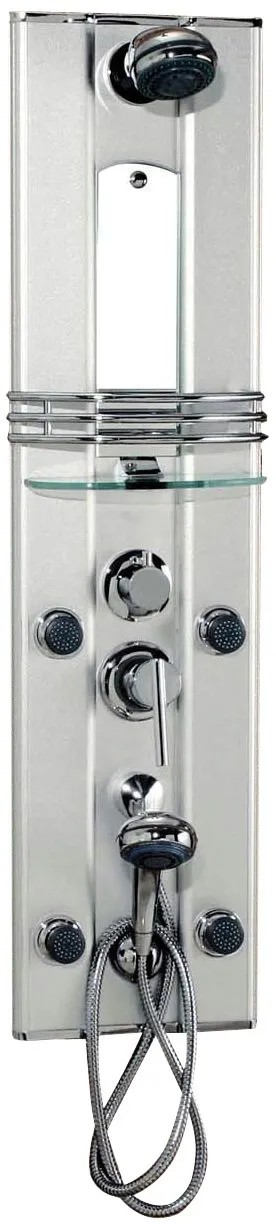 A Sanotechnik Palma zuhanypanel alumíniumszínű, modern formájával tűnik ki. Az átállító funkcióval ellátott integrált keverőnek köszönhetően saját maga alakíthatja a zuhanyzás élményét. Csak válasszon a kézi zuhanyfej, a fej feletti zuhany vagy a masszázsfúvókák közül. A korpusz anyaga alumínium.