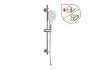 Mivel te is olyan fürdőszobát szeretnél, amely tartós, ezért minden alkatrész fémből készült. A felhasznált anyagok kiváló minősége robusztussá és tartóssá teszi a zuhanyfej készletet. Mivel a kézi zuhany háromféle zuhanysugárral rendelkezik, kiválaszthatod, hogy élénkítő vagy pihentető zuhannyal szeretnéd-e kényeztetni magad. Egyszerűen állítsd be a kívánt vízsugarat a nyomógombbal. A vízkőtlenítő fúvókák akadályozzák meg a kézi zuhany csúnya vízkőlerakódásait, emellett pedig gyors és egyszerű tisztítást tesznek lehetővé. A zuhanycső 150 cm hosszú, így tetőtől talpig lezuhanyozhatsz. A 26,8 cm hosszú kézi zuhany nagyfokú kényelmet biztosít zuhanyzás közben. A kézi zuhany és a zuhanycső szabványos 18,6 mm-es (G 1/2) csatlakozóval rendelkezik a könnyű csatlakoztatás érdekében. A 70 cm hosszú zuhanyrúd a zuhanyzó falára rögzíthető, így helyet takarít meg. Mellékeljük hozzá a rögzítőanyagokat is, hogy azonnal elkezdhesd a beszerelést.