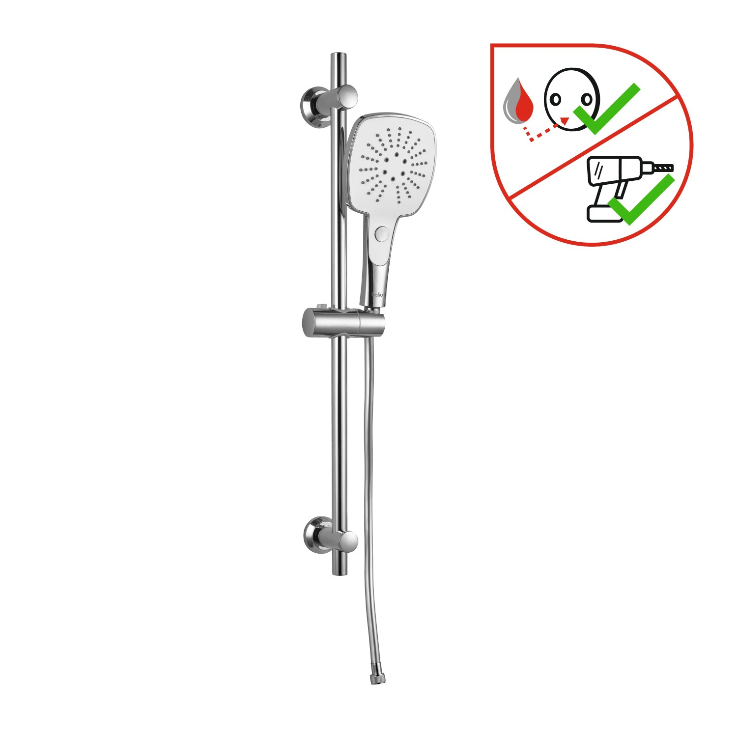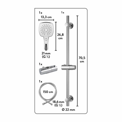 Frissítő zuhany reggel és pihentető wellness-élmény este: A baliv DBS-70. 80 zuhanyfej készlet teljesíti kívánságaidat és rengeteg zuhanyzási élményt tartogat. A króm és a fehér szín kombinációjával a zuhanyrendszer különleges hangulatot kölcsönöz a fürdőszobának. Kis kézi zuhany - nagy hatás: A szögletes kézi zuhany nemcsak modern megjelenést kölcsönöz fürdőszobádnak, hanem pontosan ugyanannyit tud, mint nagyobb társai. Egy kézi zuhanyt és egy zuhanyrudat tartalmaz. Egy csavarodásgátlóval ellátott zuhanycsövet is mellékeltünk - így minden alkatrész egy helyen van.