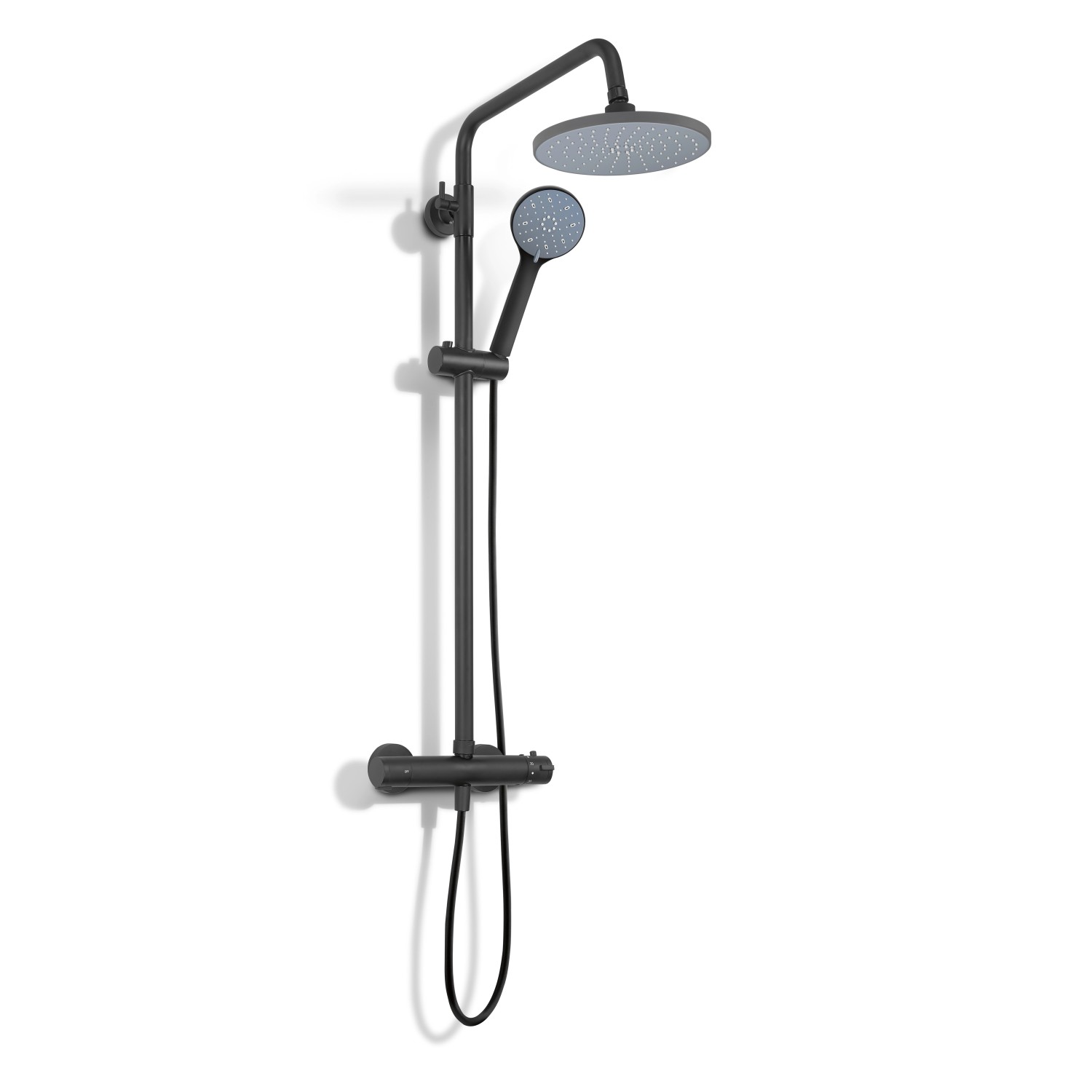 A baliv KBS-23. 90 fej feletti zuhanykészlettel a napi zuhanyzás igazi wellness élménnyé válik. Fantasztikusan mutat, és nagyszerű minőség jellemzi, hogy sokáig örömödet lelhesd a készletben. Matt fekete megjelenése révén a zuhanyrendszer a fürdőszoba modern fénypontja lesz. A kerek formák és egyenes vonalak kényelmes kezelést tesznek lehetővé, így semmi nem állhat a zuhanyzási élmény útjába. A készlet egy kézi zuhanyfejből, egy fej feletti zuhanyból, egy csatlakozóval és csavarodásgátlóval ellátott zuhanytömlőből, valamint egy függőleges rögzítőcsőből áll. A termosztátos zuhany csapteleppel tökéletesen állítható be a vízhőmérséklet.