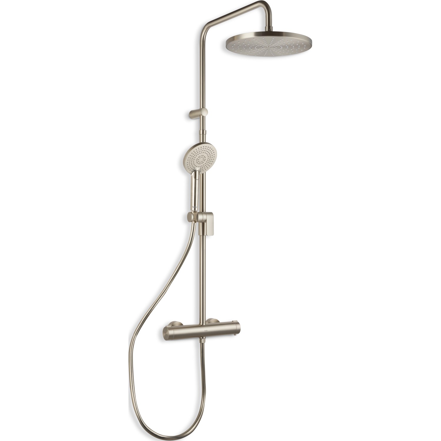 A baliv KBS-22.21 zuhanykészlettel minden zuhanyzás egy élmény. Indítsd élénkítő zuhannyal a napot, vagy élvezd a pihentető wellness élményt a nap végén. A zuhanyrendszert az egyes részek egymáshoz igazított és időtálló formaterve jellemzi. Elegáns inox megjelenésével gondoskodik a szükséges csillogásról a fürdőszobában A kézi zuhanyfej és az esőztető fej elegáns megjelenését a lekerekített alak teszi még hangsúlyosabbá. A kézizuhany és az esőztető fej, a csavarodás elleni védelemmel és csatlakozóval ellátott zuhanytömlő, valamint a függőleges rögzítőcső és a zuhany csaptelep révén minden rendelkezésre áll, amire szükséged van. A csaptelep egy praktikus termosztáttal rendelkezik, amellyel szabályozhatod a vízhőmérsékletet.