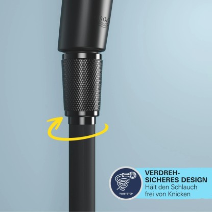 A kézi zuhanyt, valamint a kádat vagy zuhanytálcát a ShockProof szilikongyűrű védi a sérülésektől. Annak érdekében, hogy ne veszítsen az anyag csillogásából, a zuhanyszett a Grohe Long-Life felületnek köszönhetően nem karcolódik, és könnyen tisztítható. Ezenkívül a Grohe SpeedClean segítségével a zuhanyfej fúvókái ujjal könnyen megtisztíthatók a vízkőlerakódásoktól.Rugalmas telepítés és hőmérséklet-korlátozó