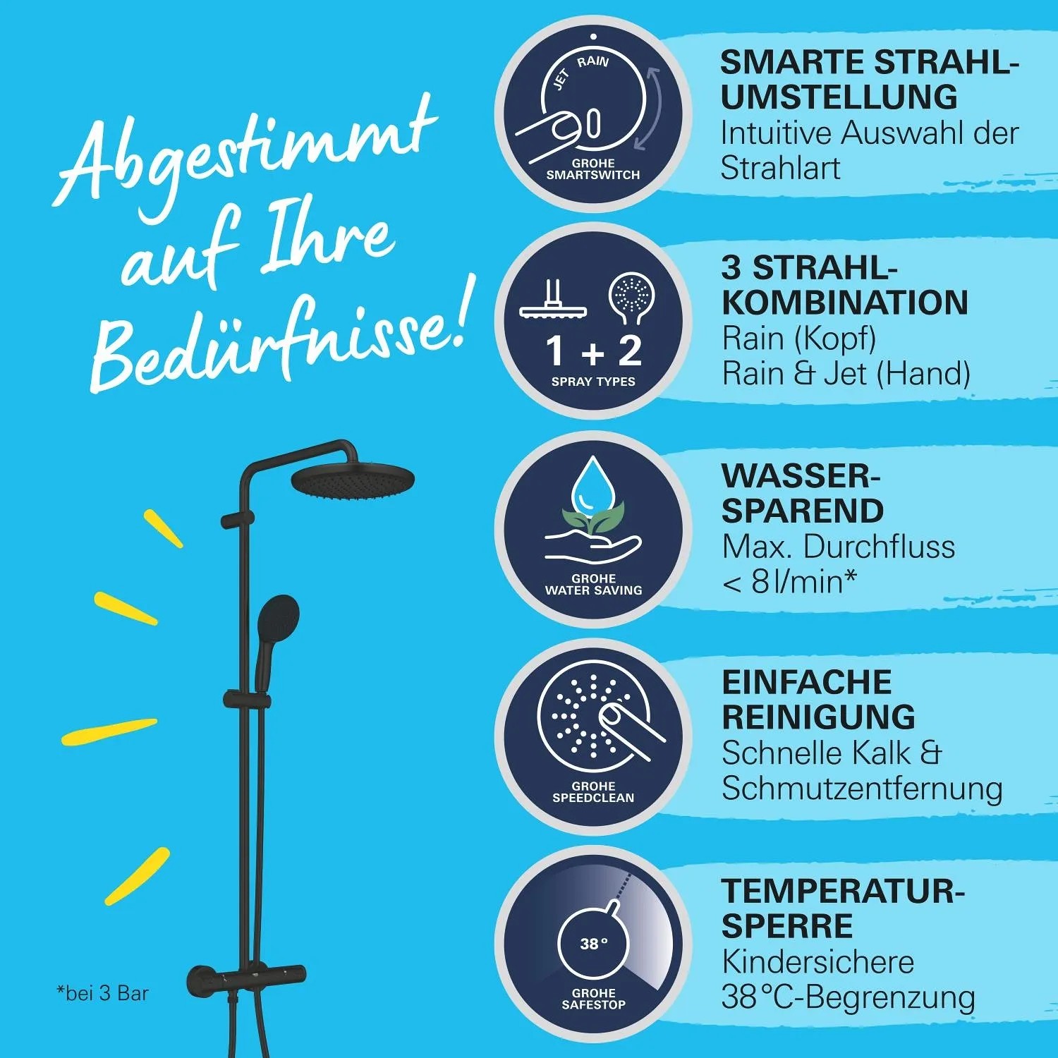 Grohe zuhanyrendszer Vitalio Start 250 fekete matt kerek termosztáttal