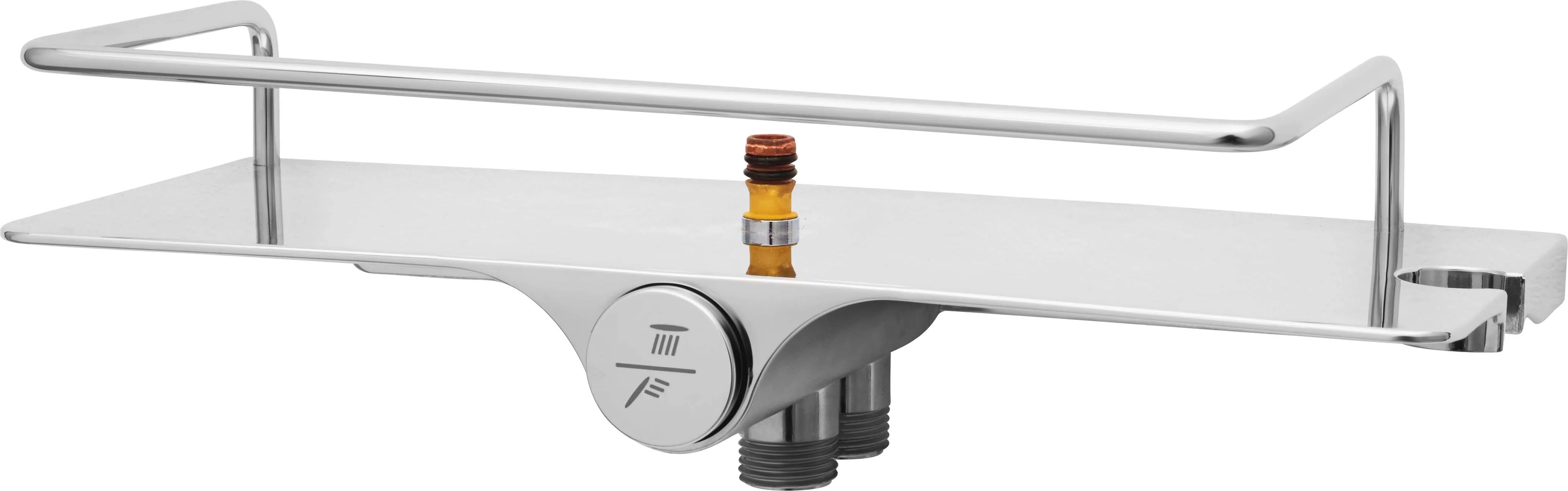 A kézi zuhanyfej és a fej feletti zuhanyfej is vízkőmentes fúvókákkal van ellátva, melyek megelőzik a lerakódásokat. A kézi és a fej feletti zuhany közötti váltás egy nyomógombos átállítóval történik. A fej feletti zuhanyfej átmérője 22,5 cm, amely intenzív esőélményt biztosít. A kézi zuhanyfej három funkcióval rendelkezik, melyek egyedileg állíthatók. A rozsdamentes acélból készült zuhanytömlő hossza 1,50 m, így elegendő mozgásteret biztosít. A csatlakozótömlő 18,6 mm-es (G1/2) csatlakozókkal használható.