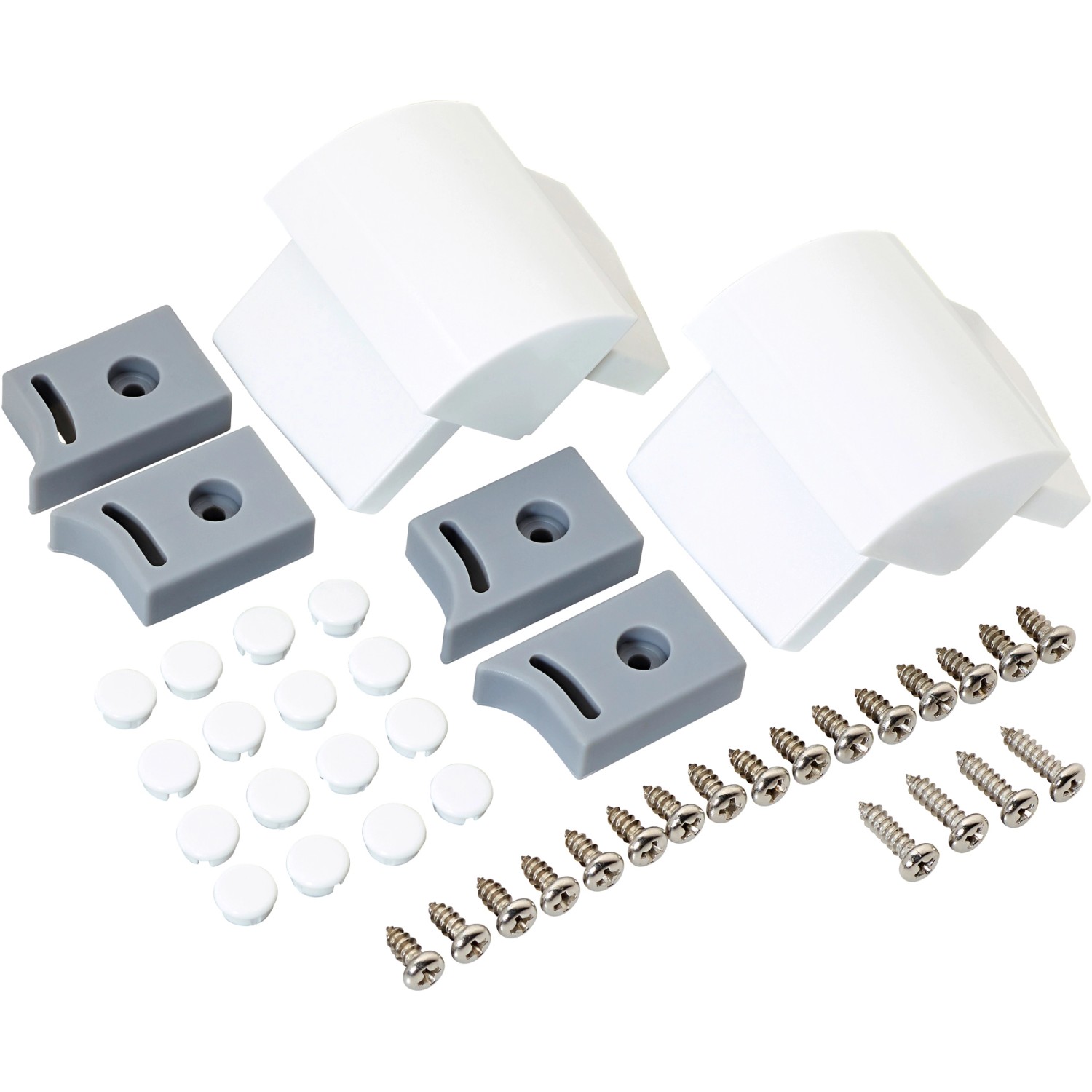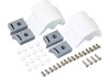 A fehér padlórögzítő készlet a Belfast zuhanyfülke padlóra történő szerelésére szolgál, a szükséges profilösszekötőket, ajtóütközőket, takaróelemeket és csavarokat tartalmazza.