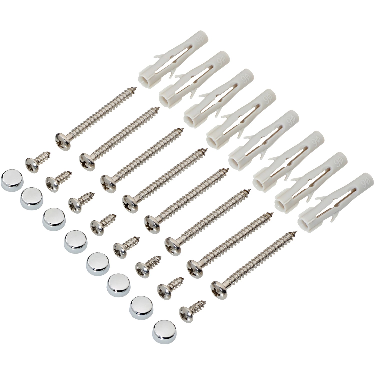 A rögzítőkészlet a Visolo sorozatú forgóajtók profiljának falra történő felszerelésére szolgál, a szükséges csavarokat és dübeleket tartalmazza.